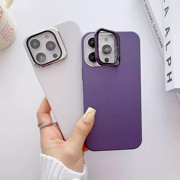 A "Clear Camera Hidden Stand" phone case typically refers to a phone case with a frosted finish and a hidden bracket on the back of the case. The bracket is designed to be pulled out and used as a stand to prop up your phone, allowing you to watch videos or make video calls hands-free.