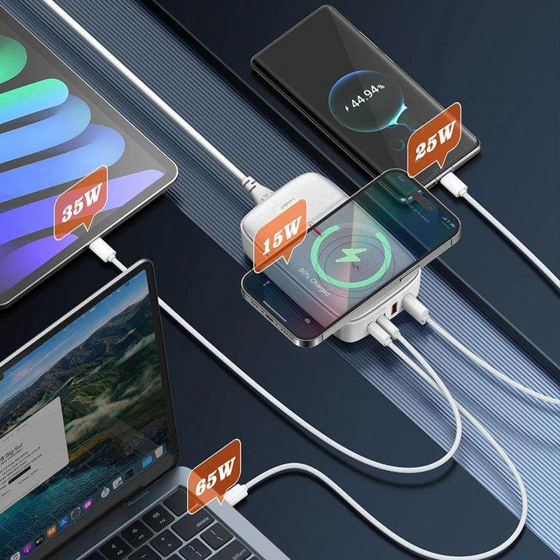 - Multi-Device Support – Charge up to 5 devices simultaneously with USB-C, USB-A, and wireless options.