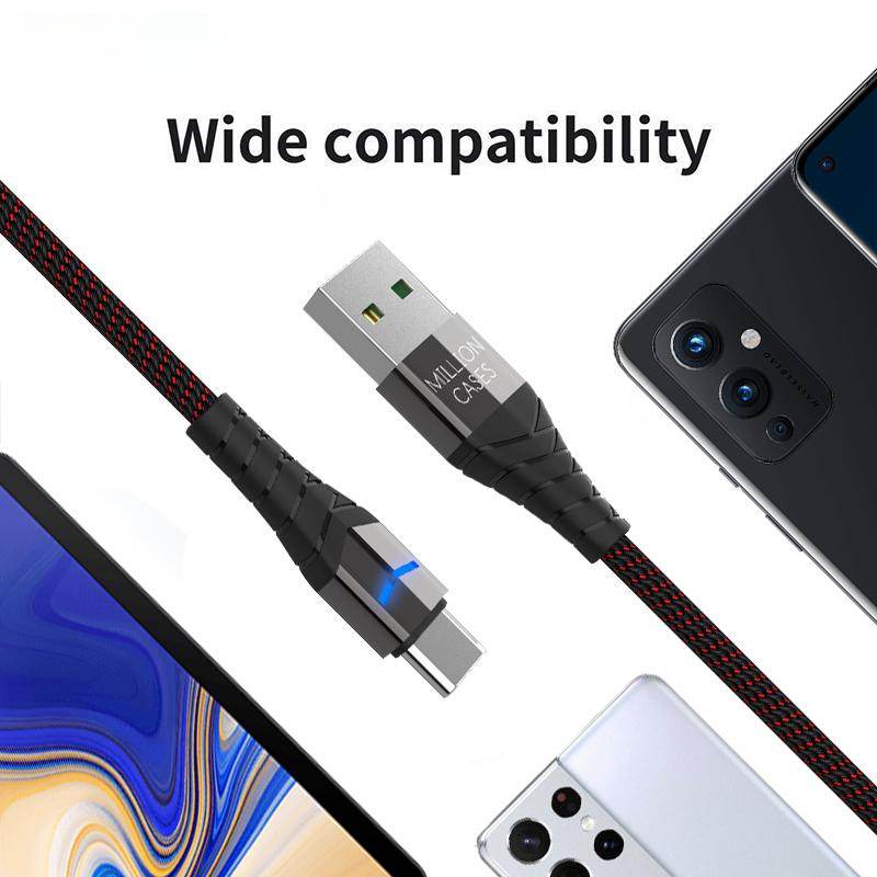 The All-New Million Cases ® Fast Charging Type-C Cable featuring Nylon Braiding Makes it Durable and Long Lasting which Definitely Lasts Longer than a normal Charging Cable.