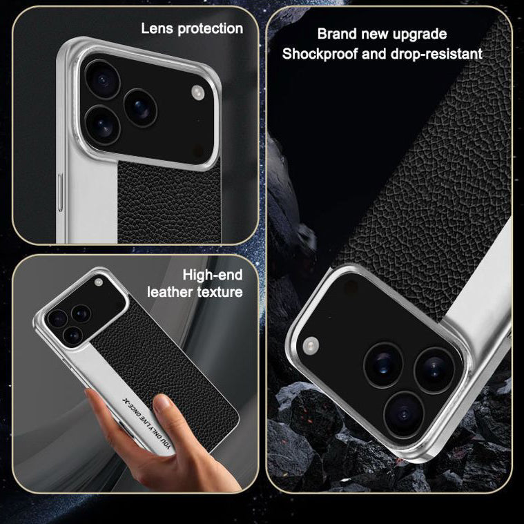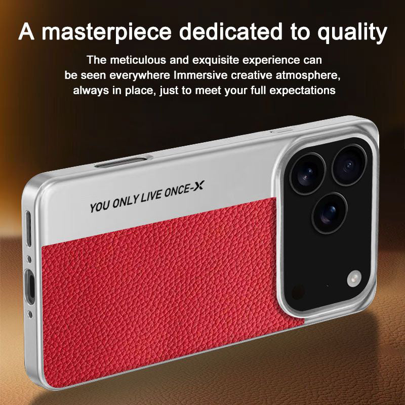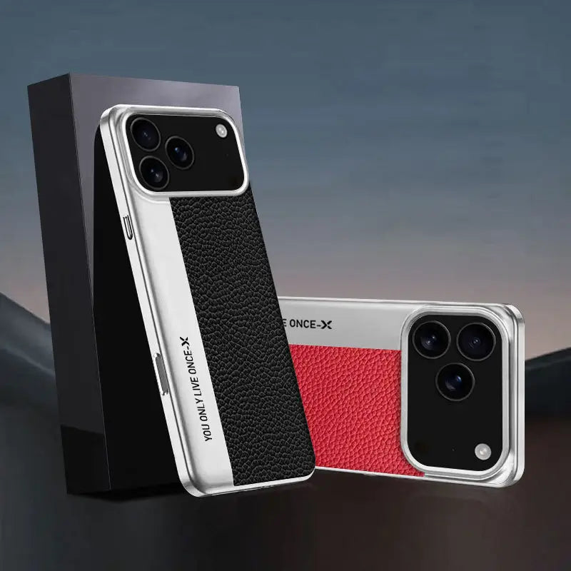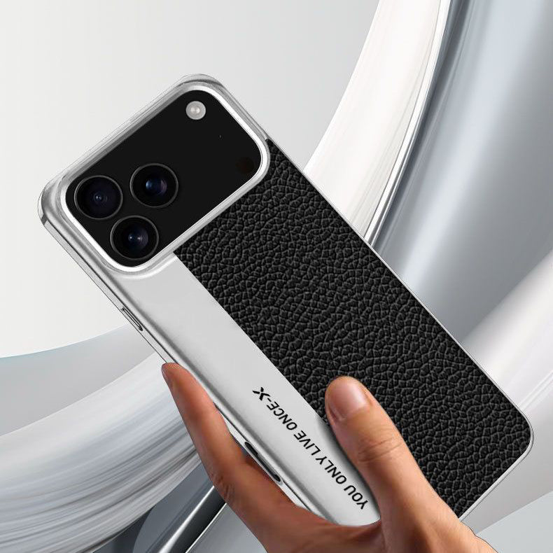 Make every moment count with the Only Live Once case. Designed with a sleek silver metal frame and a textured black leather back, this case combines durability with a bold statement. The engraved “YOU ONLY LIVE ONCE” detail adds an edge of motivation and modern style, making it perfect for those who live life without limits.