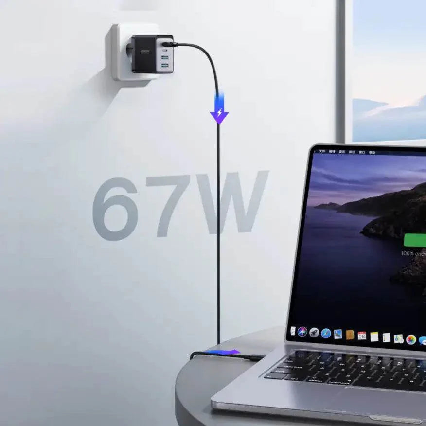 The ultimate charging solution for your devices. With four high-speed ports delivering up to 67W of power, this compact charger ensures all your gadgets stay powered throughout the day.