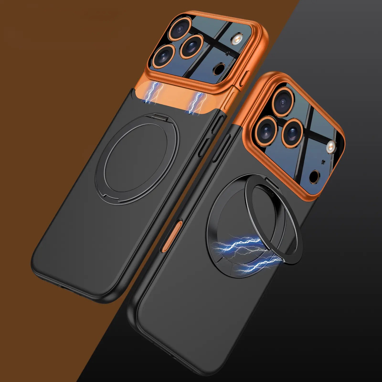 Give your phone a premium upgrade with the Thunder Lock Power Ring Case A matte anti-fingerprint back meets a bold copper camera bumper for modern, two-tone style. The integrated magnetic ring snaps to MagSafe™ chargers and mounts, and rotates out into a sturdy kickstand for hands-free video calls, bingeing, or selfies. Slim, grippy, and drop-resistant, it protects your device without the bulk.
